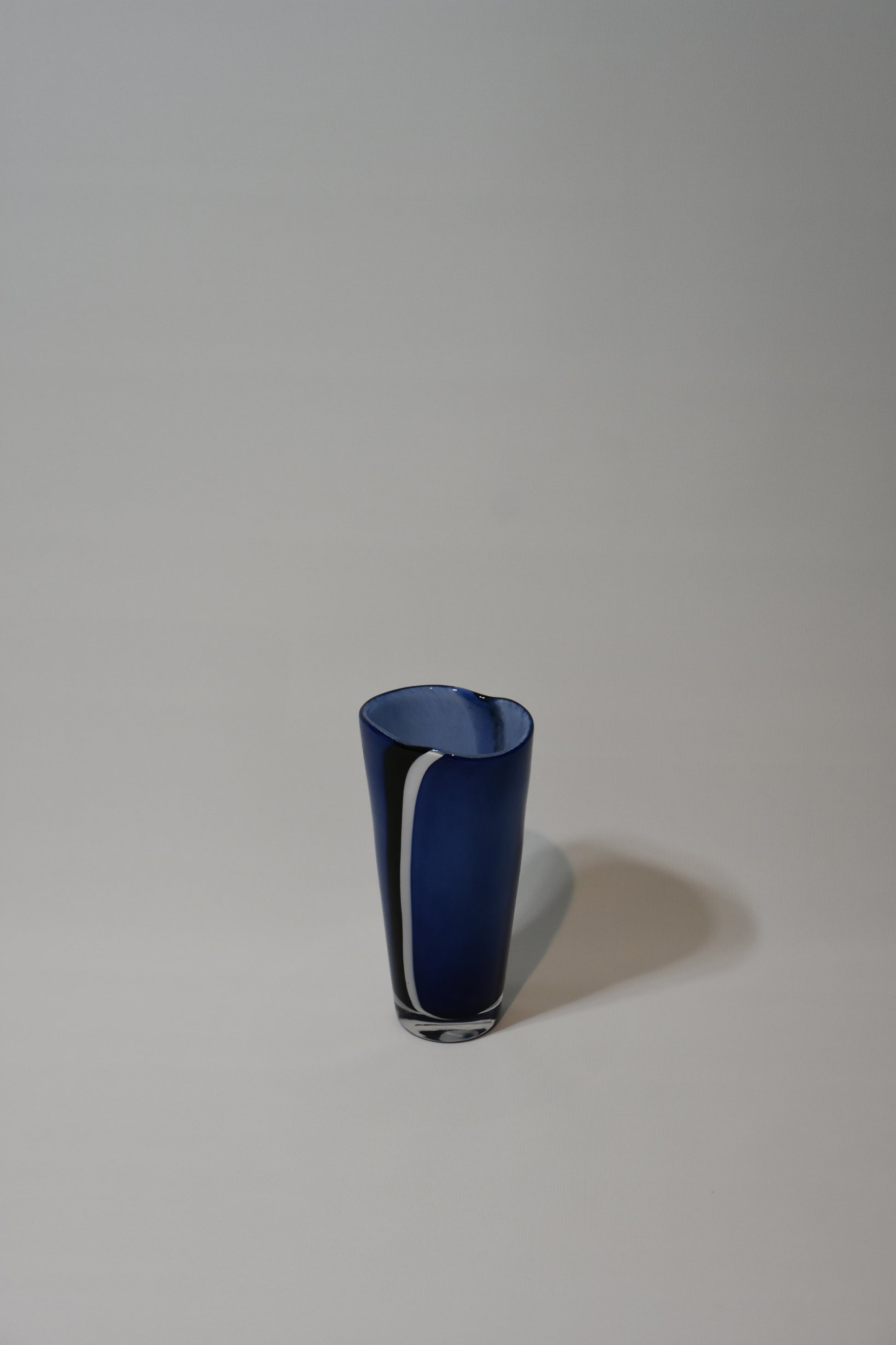 Glass vase in Blue, black & white. Designed by artist Gunnel Sahlin from her Madagascar collection for Kosta boda. Handmade by master glassmakers in Kosta Boda's Swedish glassworks. Completely lead-free materials; washing by hand recommended.