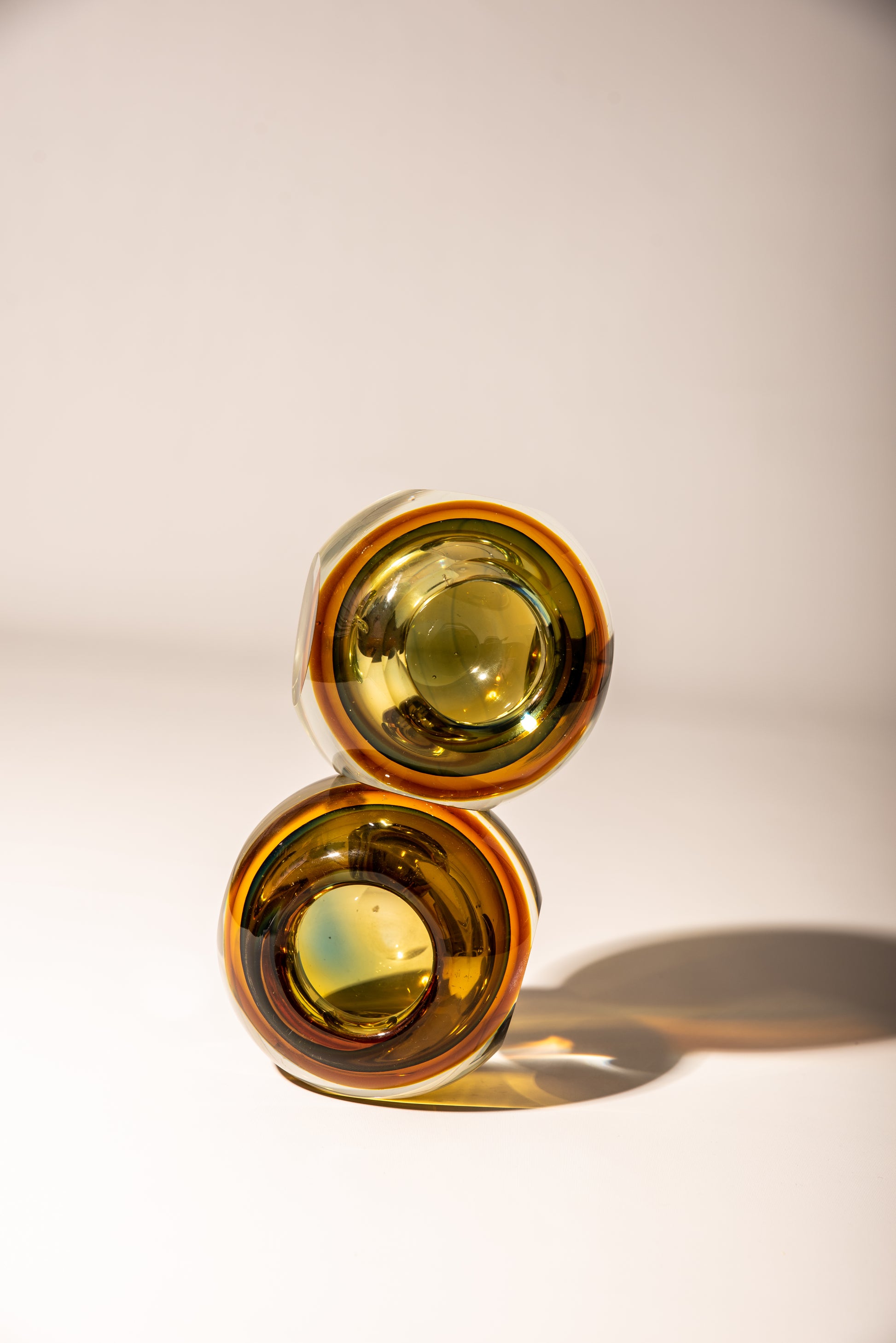 Sommerso (Italian for "submerged") is the Murano glassmaking technique of creating two or more layers of contrasting glass without the colours mixing together. It is formed by dipping coloured glass into molten glass of a different colour, before blowing the glass into the required form.